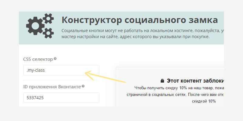Чтобы социальный замок понимал какой контент нужно закрыть, этот контент нужно обозначить. Либо к html блоку нужно добавить класс или id, либо создать html блок с классом или id.